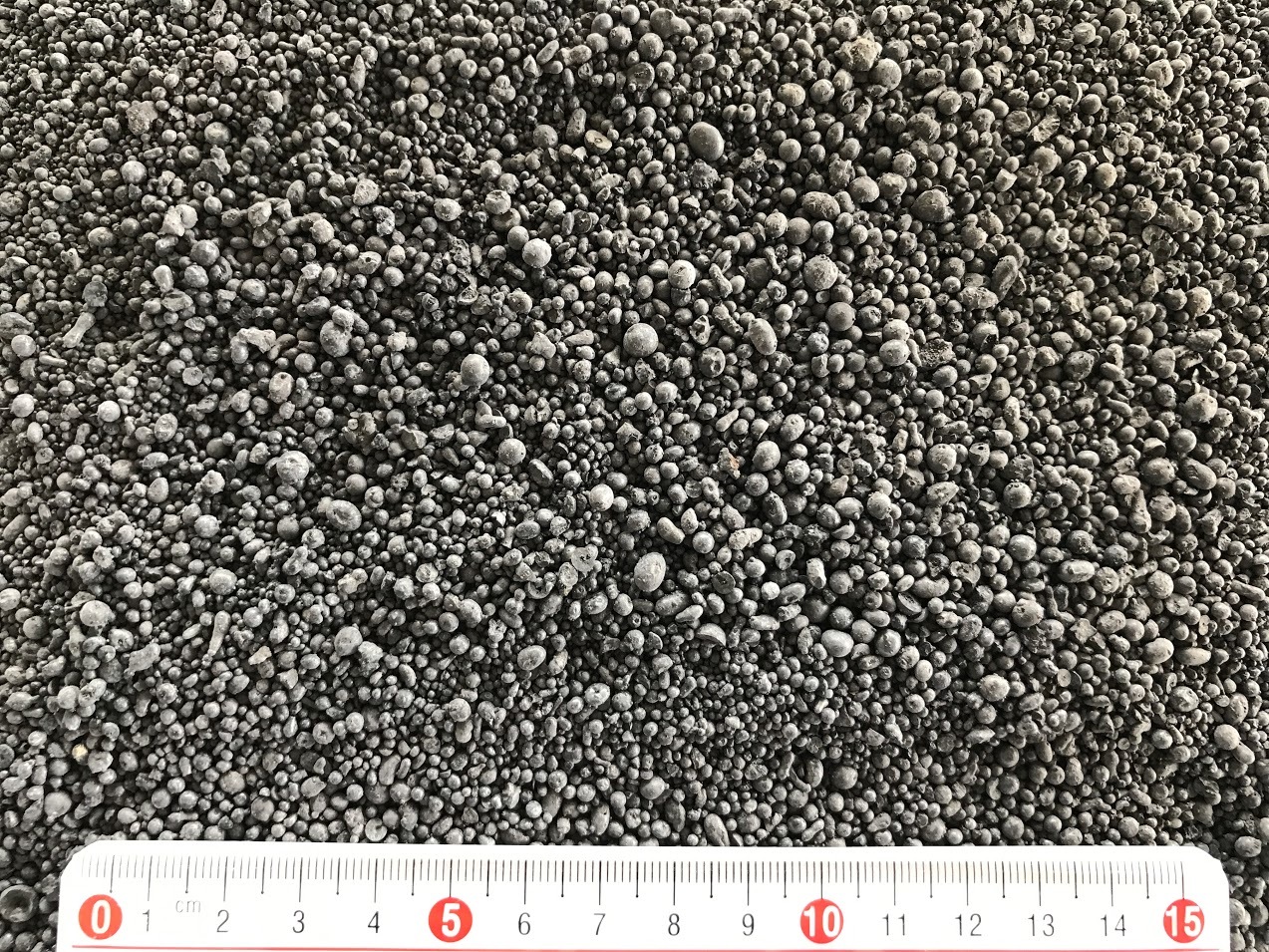 【特徴】 | 電気炉製鋼所から得られる酸化スラグを、1500℃前後の溶解状態から特殊加工・破砕分級した高品質セラミック骨材(細骨材)です。 天然骨材では得難い、種々の特徴を持ちます。 (1)色調は艶のある黒色を呈し、表面にはひび割れ等の欠陥はなく、微細な凹凸があります。 (2)天然のものと異なり、粘土、有機不純物、塩分は全く含まれておりません。 (3)主要な鉱物組成はWustite(FeO)、Magnesium-Iron-Aluminum-Oxid(MgFeAlO4)及び非晶質珪酸塩とからなっています。 なお遊離石灰や遊離マグネシア及び不安定な鉱物は含まれておりません。 (4)旧モース硬さで6~7であり耐摩耗性にも優れています。なお、絶乾密度は3.60g/㎤です。 (5)耐酸、耐アルカリ性などの特性があります。高温で処理された工業製品のため、物性が安定しており、溶出等による環境負荷もありません。 |