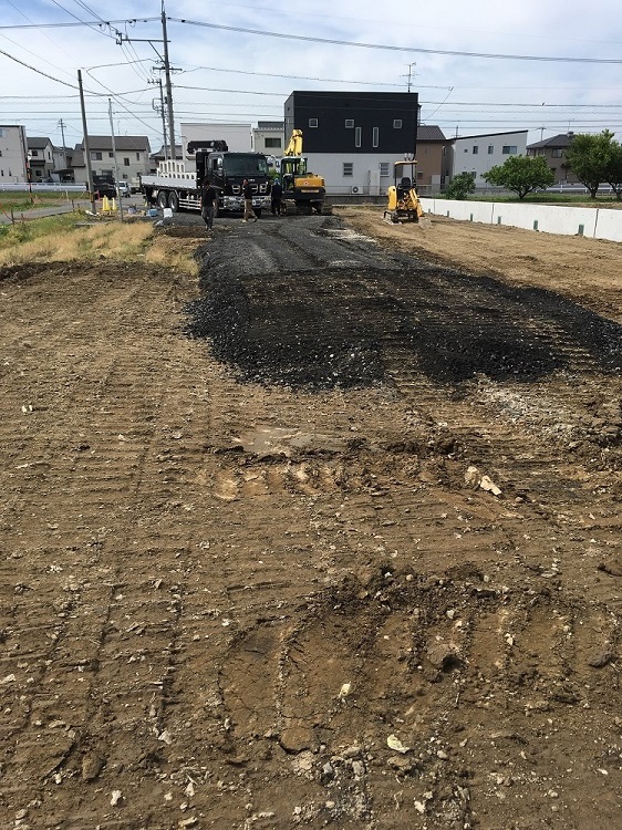 比重が重く、粒度範囲内で適度なバラつきがあるため、締め固めが良く「作業用仮設道路」が簡易に施工できます。
