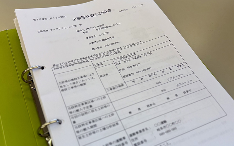 これにより、どの現場からどのような土が持ち込まれたのかを明確にし、不適切な搬入や異物の混入を防止しています。