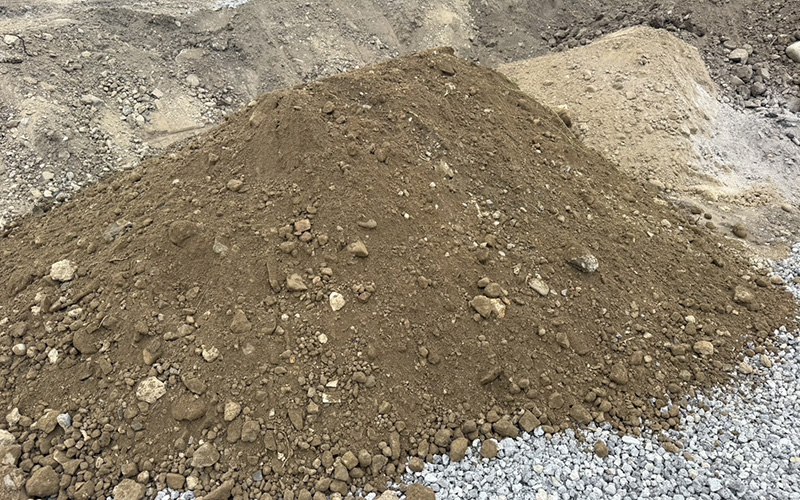 攪拌機や重機で均一に混合することで、強度・透水性などの特性をコントロールし、造成・埋め戻し・路盤材など、用途に応じた改良土を製造します。