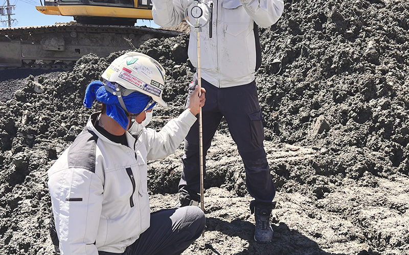 受入時の土砂と改良後の成分試験・土質試験を行うことで、安全性を担保し、すべての結果を記録として管理しています。