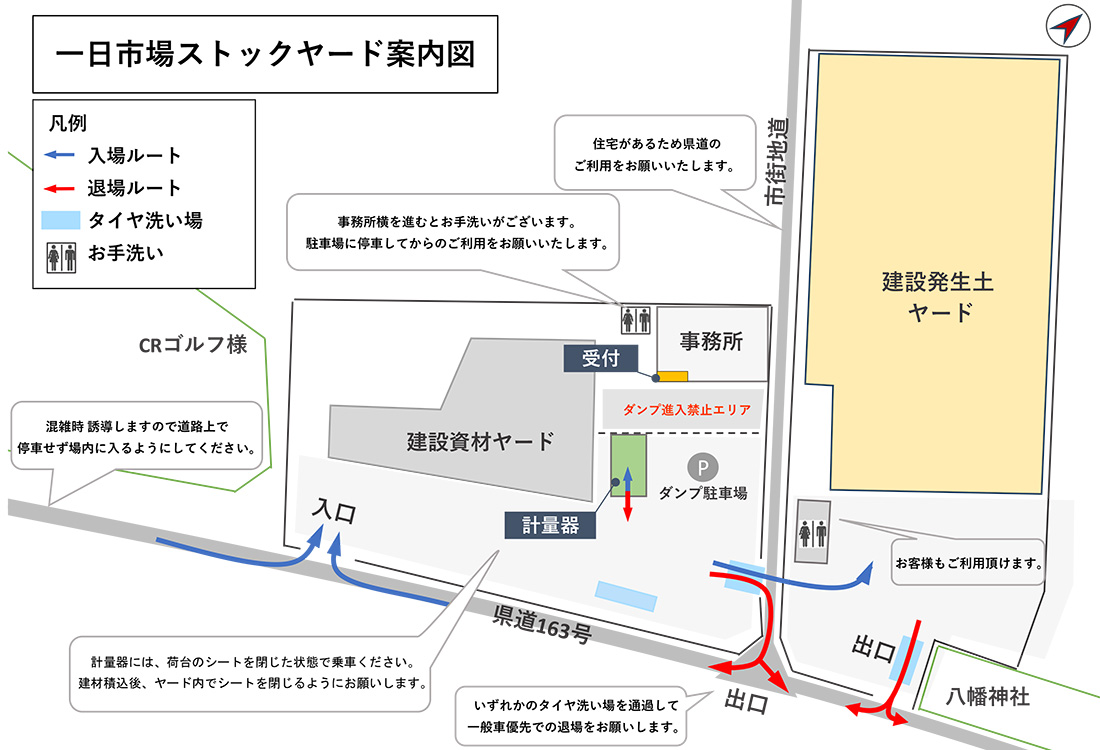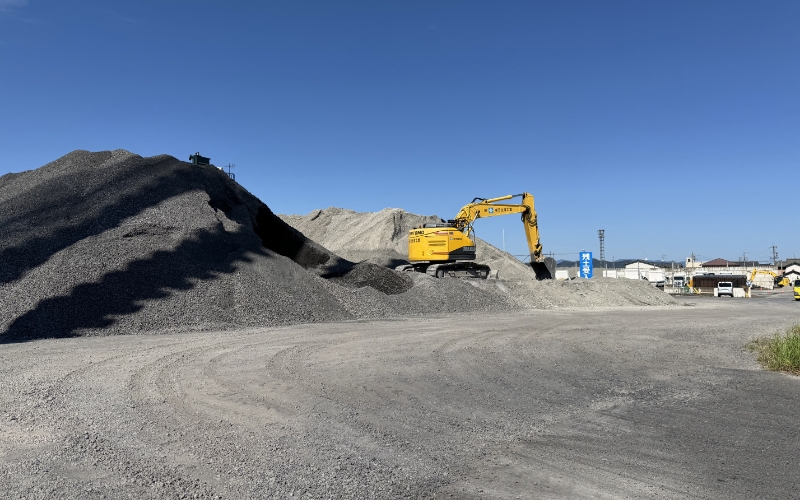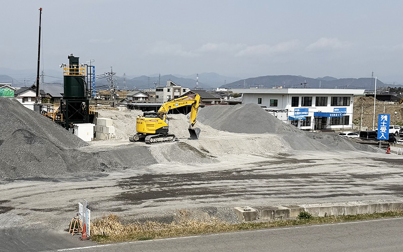 一日市場ストックヤードは、建設現場で発生する建設発生土の受入れ・保管・再資源化を行う拠点です。受け入れた土は自社設備で改良・選別を行い、良質な再利用材として造成や埋戻し工事に活用。限りある天然資源の有効活用を進めるとともに、環境負荷の軽減とコスト削減を実現しています。地域に根ざした循環型社会の構築を目指し、持続可能な土のリサイクルを推進しています。